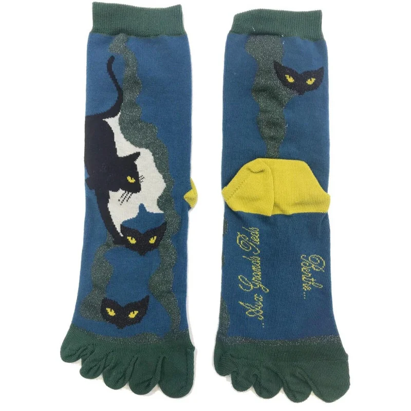 Chaussettes originales 5 doigts Berthe aux grands Pieds Chats noires