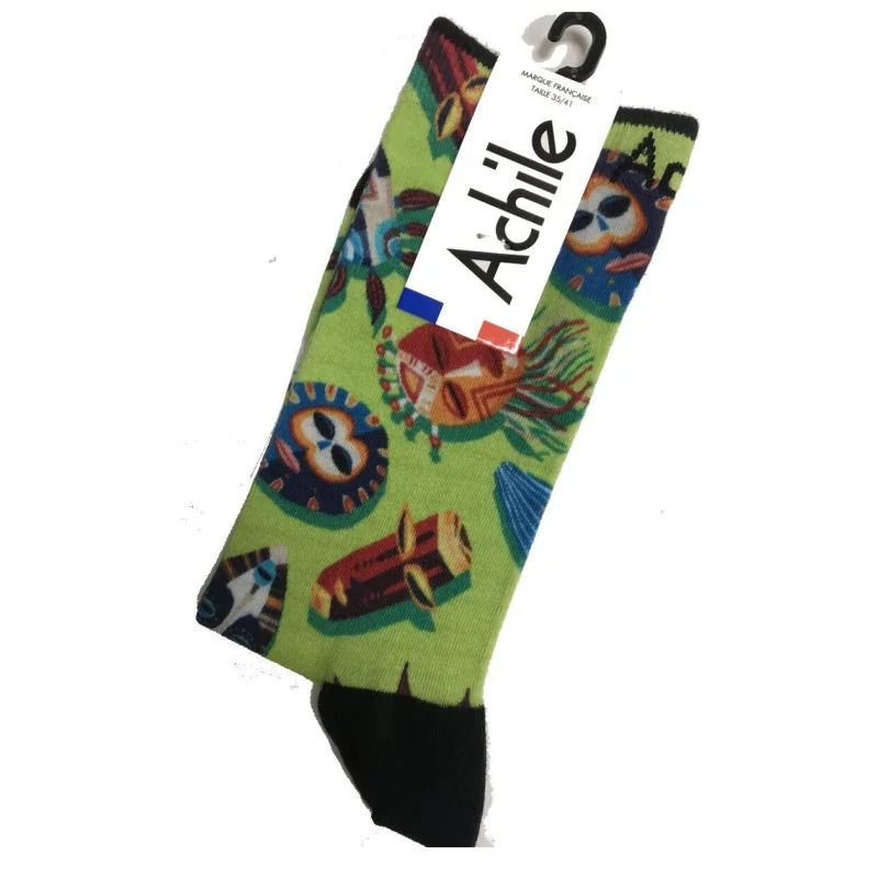 Chaussettes Fantaisie imprimé Achile art tribal Vert