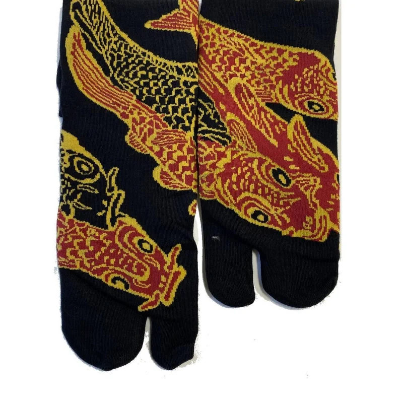 Chaussettes noires Avec de jolies Carpes rouges et noires