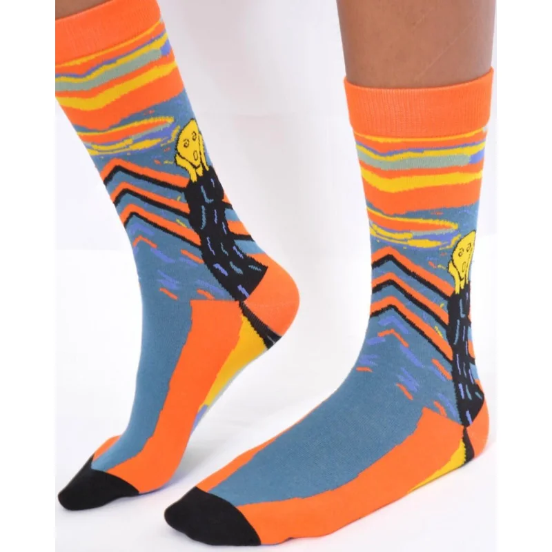 Souple et ludique ces chaussettes s’inspire de l’un des plus joli tableau impressionniste depuis plus de 100 ans, le cri de Munch