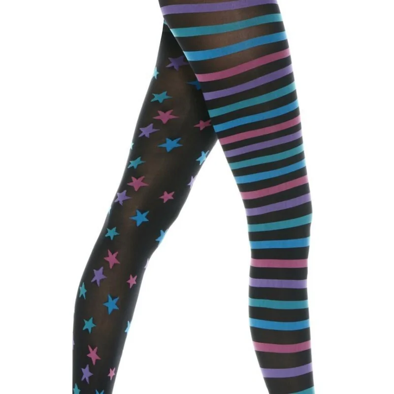 Collant opaque à motif asymétriques rayures étoiles