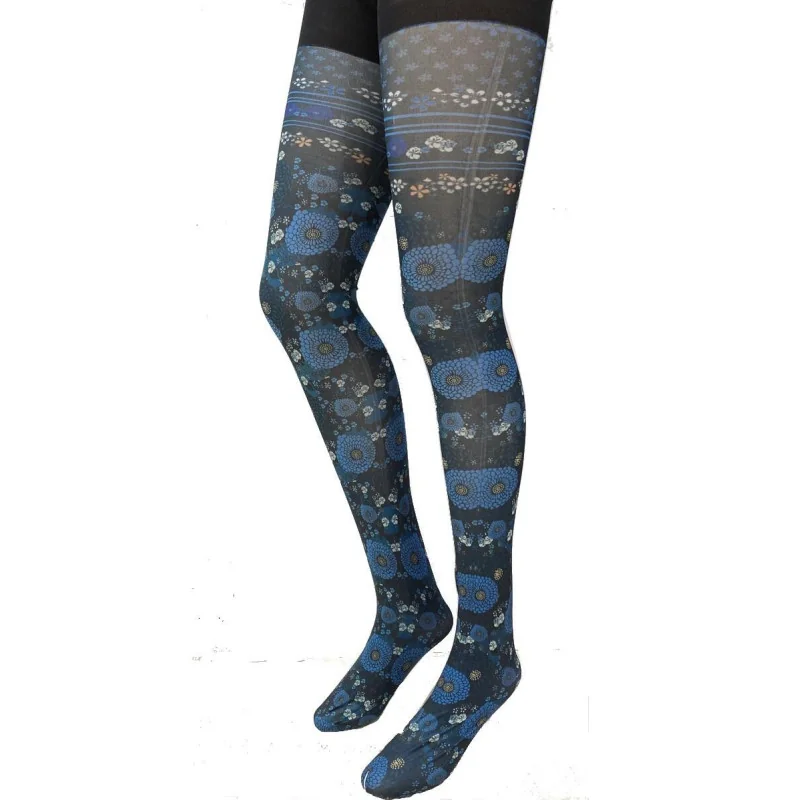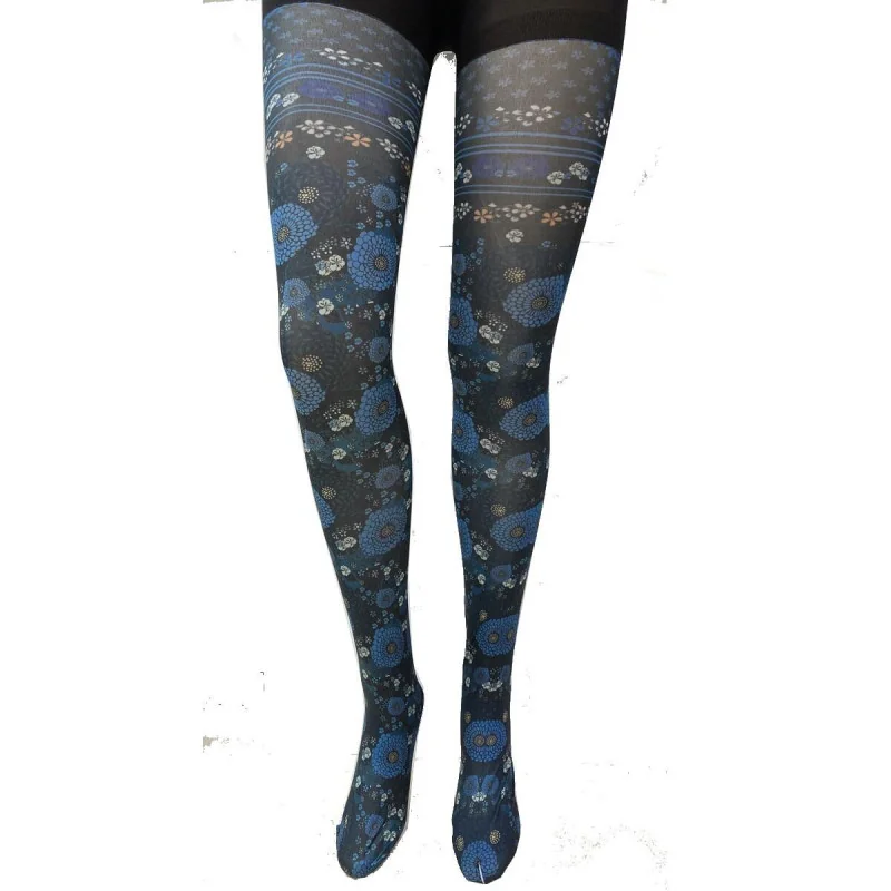 Collant tendance original Imprimé à fleurs vert et Bleu vert d’un joli dessin en profondeur, un collant discret avec du style et une tedance vert à fleurs.
