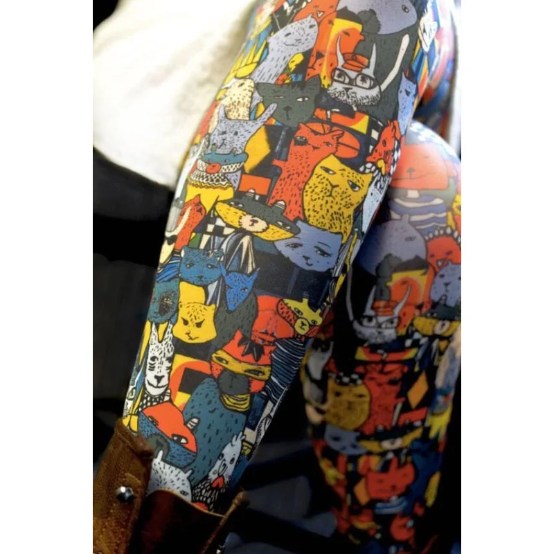 Une crĂ©ation de Marieantoilette qui illustre que dĂ©cidĂ©ment la crĂ©atrice aime bien les chats, Ă regarder de plus près y en a plein et ils sont de tous polis, intellos, charmeurs, blagueurs, mauvais garçon,… Bref des vrais chats quoi, et çà c’est une crĂ©ation de Marieantoilette pour les jambes.