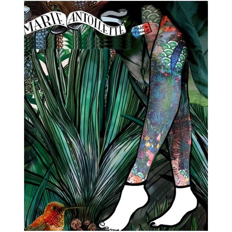 Collant rigolo sans pieds MArieantoilette jungle fleuri avec félin