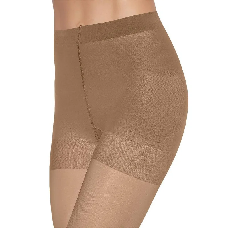 Les collants wollford Miss W sont soulageant et revitalisant : ce collant mat et semi-transparent offre un maintien parfait au niveau des jambes grâce à la répartition idéale et anatomique de la pression. La matière gainante tricotée sur le devant de la culotte remodèle le ventre. Ses détails raffinés comme le talon circulaire tricoté et étroit ou la pointe sans élasthanne garantissent un confort absolu de la taille jusqu’au bout des pieds.