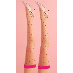 L’effet rayures est joliment agrémenté d’un bout de pied et d’une rayures rouges à la cheville.