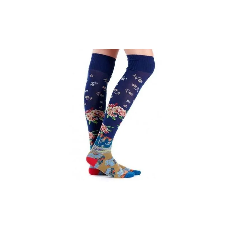 Chaussettes hautes au dessus des genoux qui en jettent fantaisie avec une tendance bleu royal , Chaussettes à fleurs bleu roi