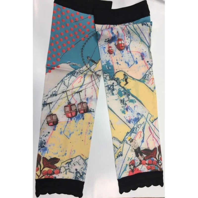 C’est l’hiver et pour certaines on a hâte d’aller faire un tour sur les pistes de ski. Cette création originale de Marieantoilette fait référence au film d’anthologie Les bronzés font du Ski… avec l’inoubliable michel Blanc qui chantait : « Quand te reverrai je… Pays merveilleux… » Les manchettes complétent la collection de collants imprimés