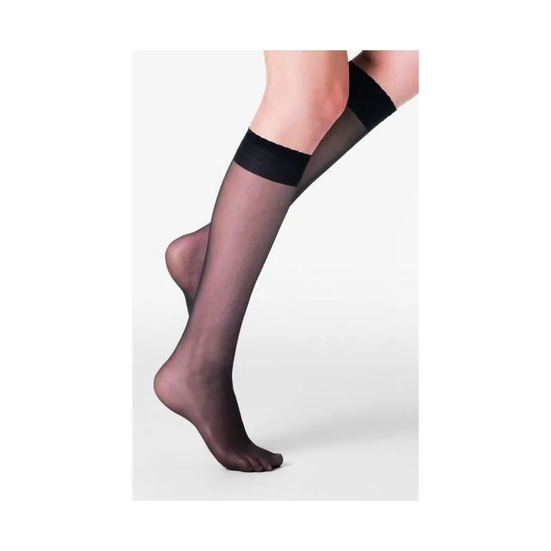 Ces Mi bas sont en voile fin 20 den légèrement renforcé aux doigts de pieds, la taille est spécialement étudiée en fonction de la largeur du mollet, les pieds étant en voile, la souplesse naturelle du voile élastique souple s’adapte à tous les pieds.