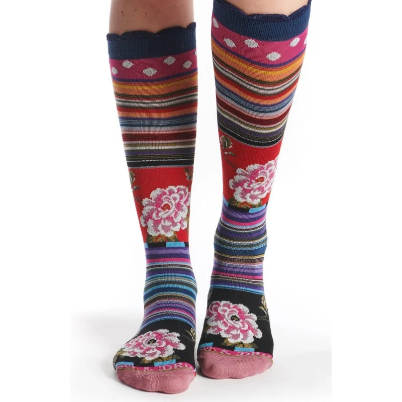 Chaussettes originales hautes à rayures fleuries Baya une collection de Dub et Drino