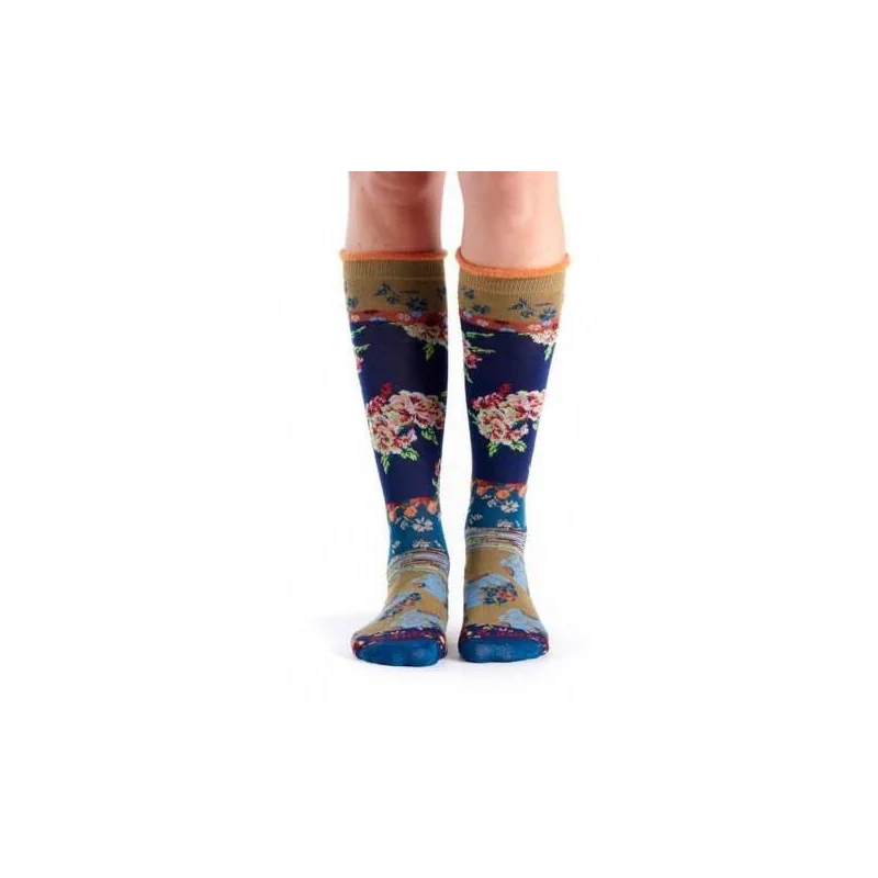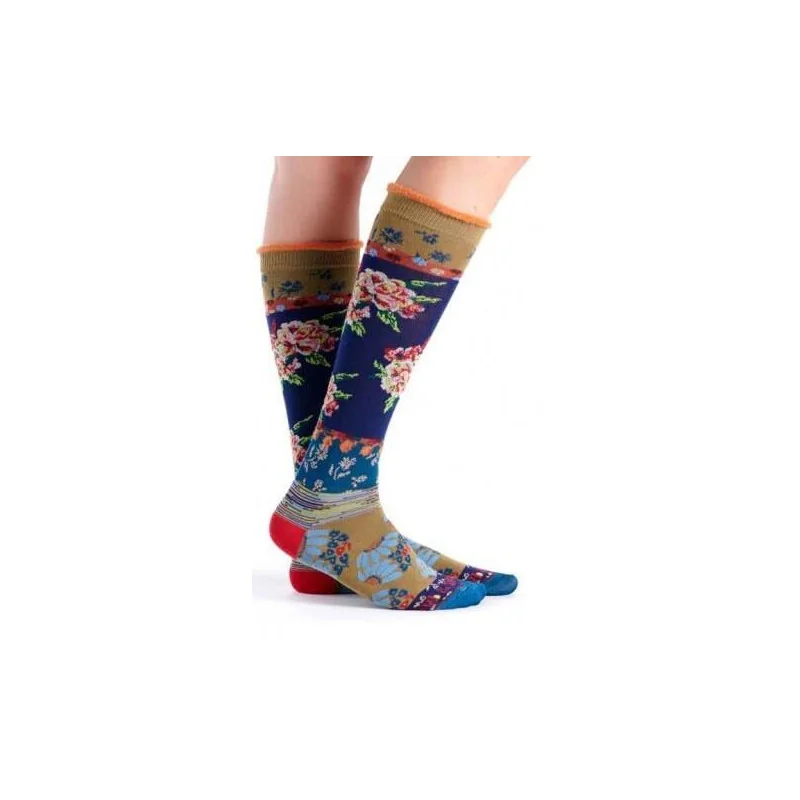Chaussettes en coton montante fleuries souples et qui ne serrent pas.