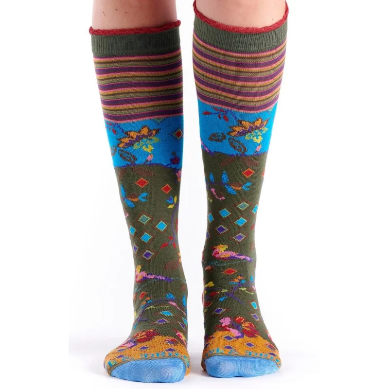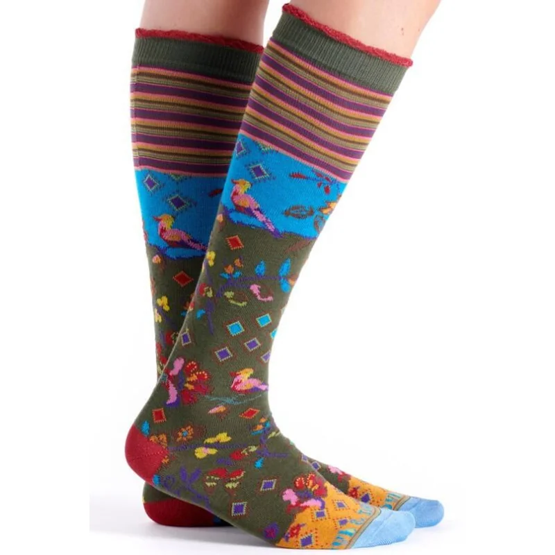 Mi bas original rigolo KAki à fleurs et oiseaux originaux.